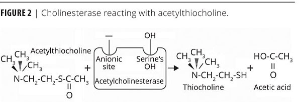 The Elcometer 139 Amine Blush Screen Test Kit(s) testing method was developed for the coatings industry by adapting these test methods based on the biological response of the enzyme to carbamates. Cholinesterase normally reacts with acetylthiocholine (ATC), resulting in the cleavage of acetylthiocholine and yielding acetic acid and thiocholine (Figure 2).
