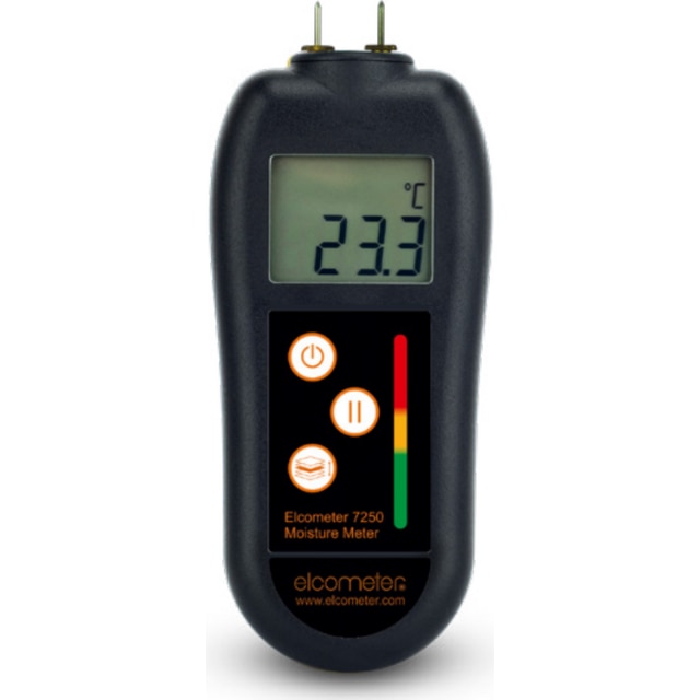 Product DescriptionElcometer 7250 Moisture Meter – Professional Moisture Testing for Wood, Plaster & ConcreteThe Elcometer 7250 Moisture Meter is a compact, high-accuracy pin-type moisture tester engineered for professionals who need reliable moisture readings before painting, coating, flooring, or property inspection. Applying coatings to damp substrates can lead to costly failures — blistering, peeling, poor adhesion, and surface defects. The Elcometer 7250 provides fast, precise measurements so you can confirm conditions are safe before work begins. Designed for contractors, inspectors, surveyors, and coating professionals, this handheld moisture meter features a dual-display system, rugged ABS housing with antimicrobial protection, and five material-specific scales for accurate moisture testing across wood, plaster, concrete, and general building materials. Key Features of the Elcometer 7250 Moisture Meter- Dual Display for Fast Interpretation